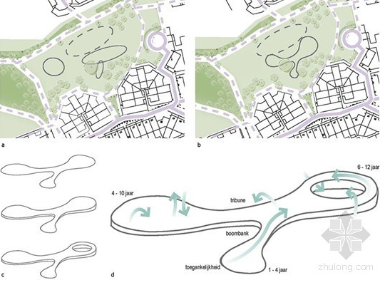 這是由Carve設計的海牙市Billie Holiday(比利假日)游樂場。位于海牙安靜的郊區Loosduinen。這座公園在翻新之前,幾乎被人遺忘。然而,隨著修復之后,這里變成了一個極具吸引力的公園。在翻新伊始,社區委員會舉辦了公眾參與的活動,充分了解了當地居民的意愿。因此,翻新足球場和自行車路徑首當其沖。通過重新安置新設備,而達到周圍空間重組的目的。